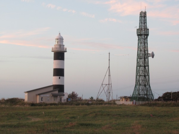 白黒のボーダー入道崎灯台は展望台になっていてのぼることは可能です。「のぼれる灯台」は全国に16基しかないそうです。 時間がなかったのでのぼることはできません残念。