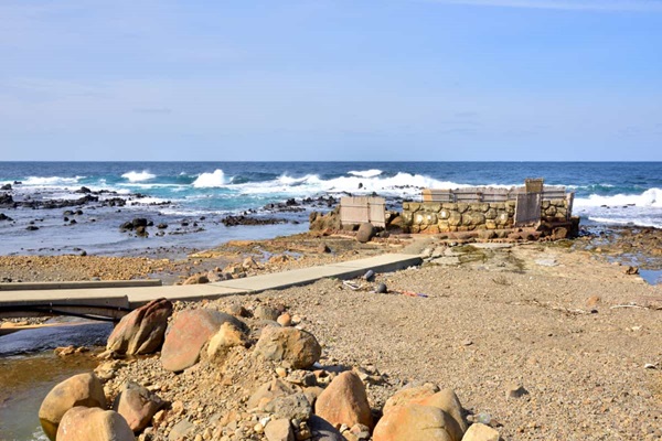 海沿いの露天風呂は建物から木の板で出来た道を歩いていきます。