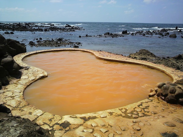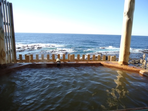 もちろん女性は湯あみ着の着用が可能になっていますが、なかなか勇気がないですね。海岸と一体化した露天風呂最高でしょうね。