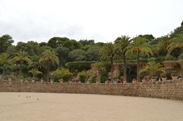 楕円形の広大なテラスとなっている中央広場。ガウディはこの広場を敷地内の住人が、様々なアクティビティや行事を行うための憩いの場として設計したそうです。