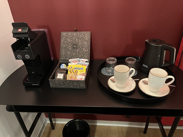コーヒマシンがありましたが使わなかった。スペインのココア美味しかった。毎日お水が2本補給されました。