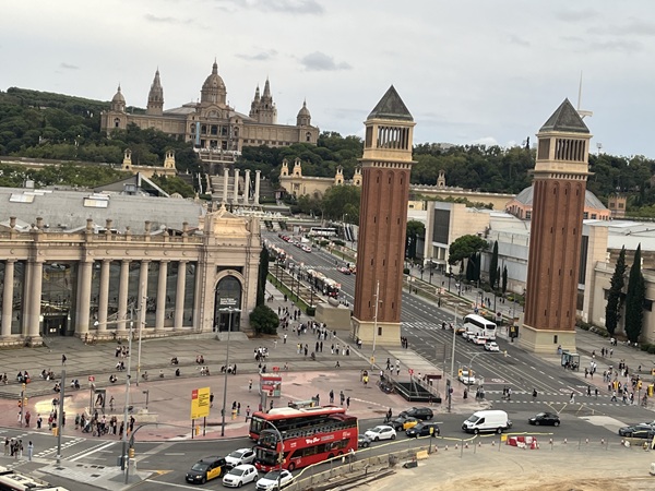 ベネチアの塔の向こうに見えるカタルーニャ美術館やスペイン広場がよく見えます。夜はとっても綺麗な夜景を見ることができました。