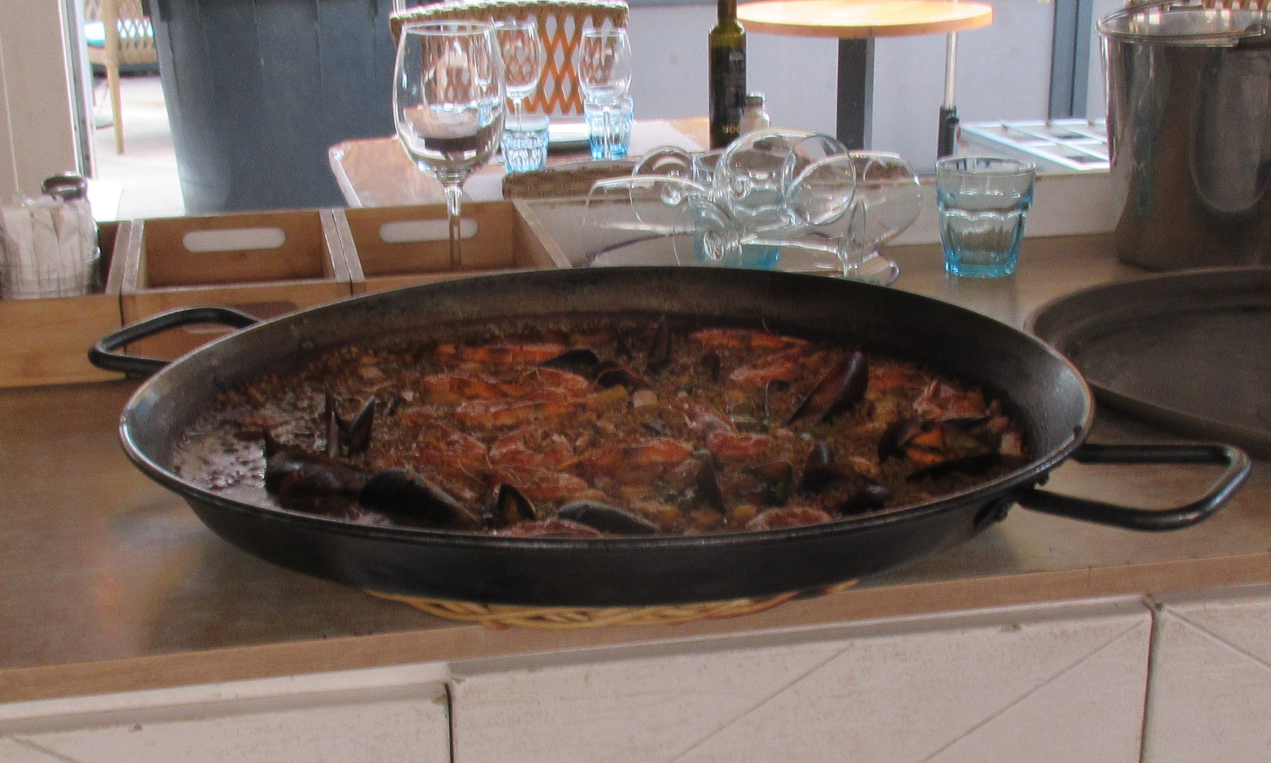 お鍋からお店の人がお皿にわけてくれます。本場のパエリアは美味しいです。