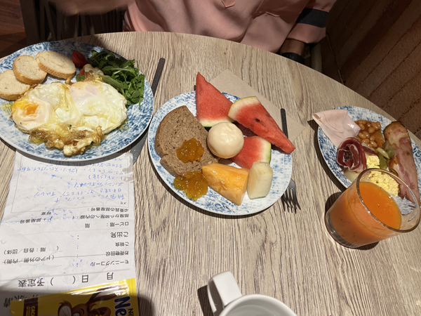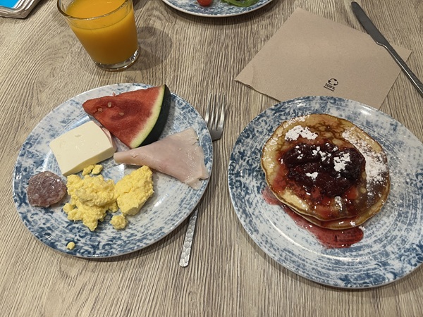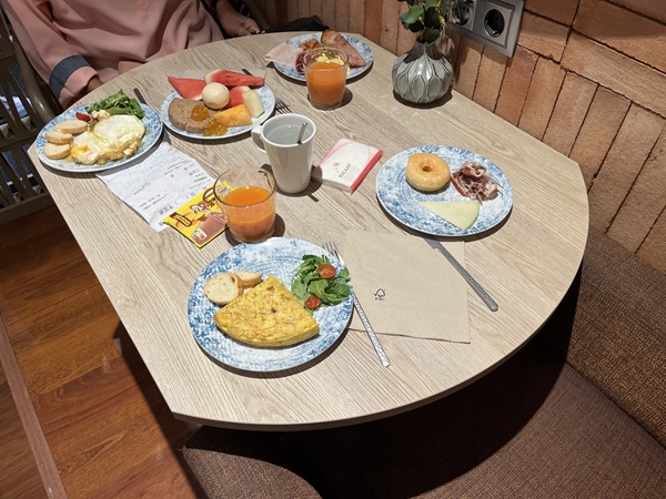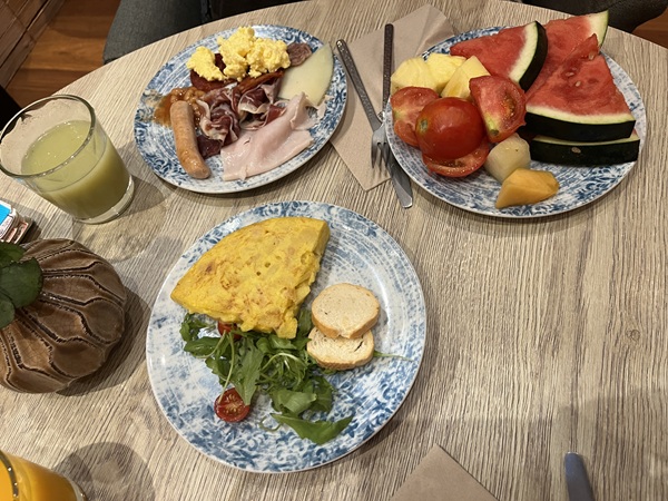 朝食の様子。生ハムがあるんですがやっぱり昨日食べたのとは桁が違うのかな残念。