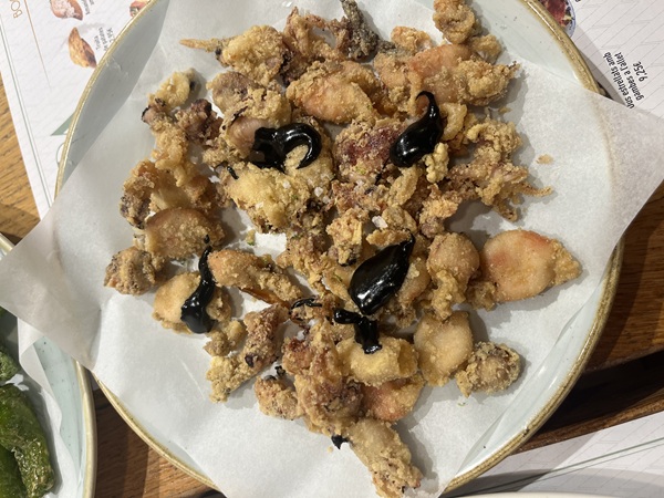 「タパス」が食べたいとお願いしたら「Tapa Tapa」に連れてきてくれました。タパスとはスペインの小皿料理のことで、色々な種類を少しずつ楽しむのが醍醐味です。メニューはスペイン語で全くわかりません。