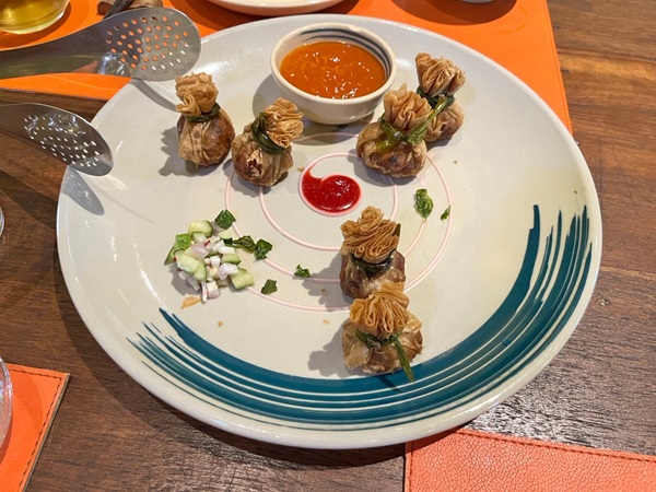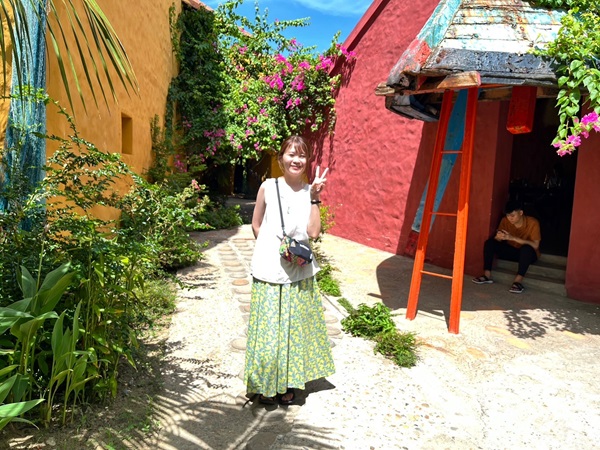 ツゥクツゥクを降ろされて少しあるくこと、カラフルな建物があり、その中で数人小さな椅子小さなテーブルを囲んで食事をしています。現地の方でしょうか?