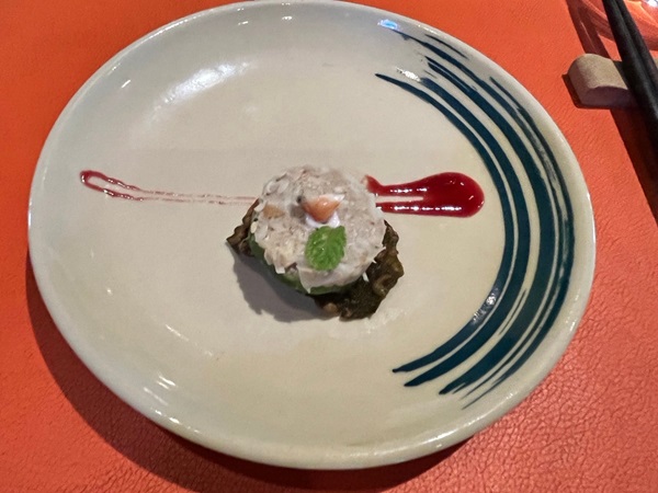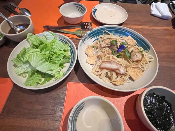 昼食の様子。料理名などわからないんですが、どれも美味しく目でも楽しませてもらいました。器もどれも統一されています。