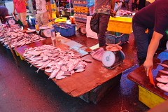 お魚の山、山、山これがチョット匂うんですね。暑いうえに魚をそのままおいてあるからなんです。