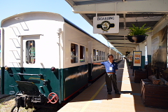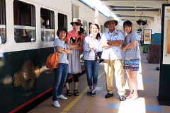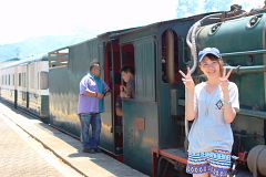 サバ州の州都コタキナバルにある、サバ州立鉄道のタンジュンアル駅(Tanjung aru Sta.)。まずは蒸気機関車とスタッフ(制服も探検隊のようです)方と記念撮影。