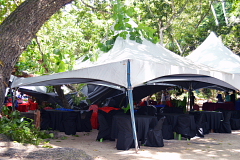 浜辺にはのテントが張ってあり国ごとに分かれておりツアーの方が使えるようです。ロッカーはなくツアーで行った場合は添乗員の方が荷物番をしてくれます。個人で行った場合は荷物を置くところがないので貴重品はお持ちにならないように。