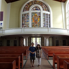 ステンドグラスがとても綺麗な入り口です。