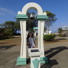 「恋人たちの鐘」をカップルでつき、3回ぴったりと音が鳴ると幸福になれるというジンクスがあるようです。カップルの方チャレンジしてみてください。この鐘は、伊豆にある日本の「恋人岬」から寄贈されたもので、伊豆が金・グアムが銀になっています。