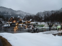 小雨が降っていました。この時期にしては雪が少ないそうです。雪の中のライトアップを期待していたのですが