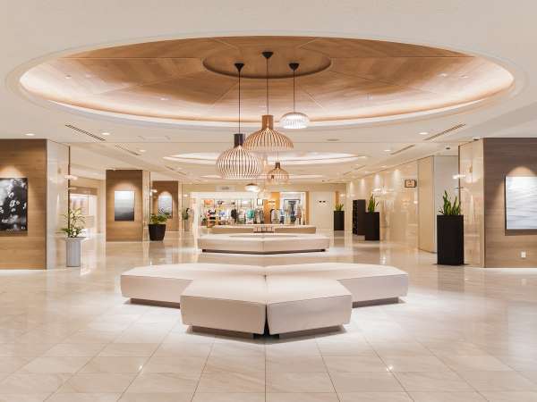 清潔感のある広いロビー、15階建物で最上階はレストランになっています。