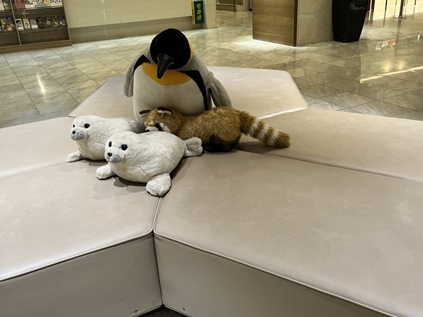 1Fのロビーには色々なぬいぐるみ置いてあります。これは旭川動物園が近いからなんでしょうね。可愛い。