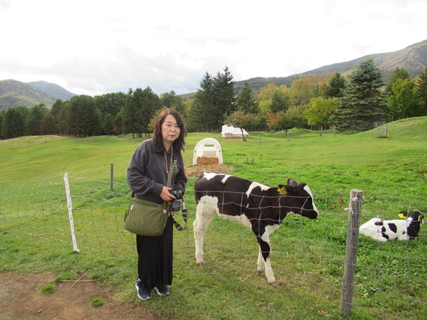 広いファームエリアは約100ha。歩いても散策できますが、牛の模様のカート(ゴルフ場にあるカートと同じ)に乗って敷地内を散策することも可能です。