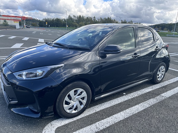4日間お世話になる車トヨタのヤリスです。主人的には黒い車は嫌なんだそうですが、安全運転でお願いしますね。
