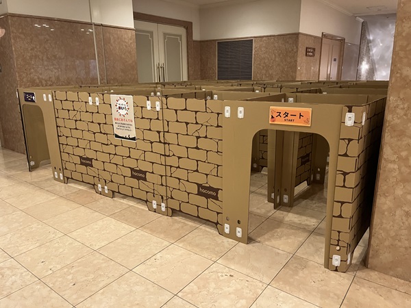 これは子供たちが楽しめる迷路ですね。段ボールで出来ているのかな?