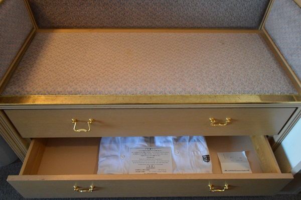 引き出しの中にはバスロープがありますが、バスロープって使ったことないですね。なんとなく落ち着かない感じがします。