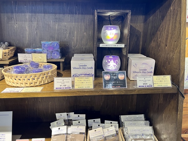 ラベンダーのアロマやシルエットグラスキャンドル(火を灯すと絵柄が揺らめいて見える))を購入。