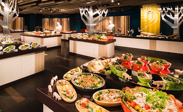 雲海テラスからバスに乗って食事会場(森のレストランニニヌプリ)開放的な森の中にたたずむビュッフェレストラン。