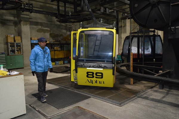 やっと番号が呼ばれてこの黄色いゴンドラに乗り込みます。ゴンドラに乗る時間んは約15分。意外と早くゴンドラは登っていきます。下には野生のシカがみえます。