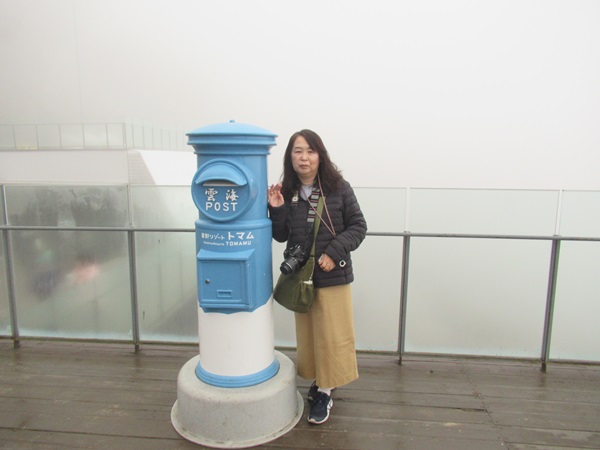 青色の可愛い「雲海ポスト」です。ポストカードを投函することもできます。