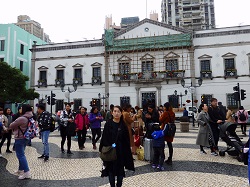 ここも沢山の人で賑わっています。この辺の建物はとても綺麗です。ポルトガルと中国が入り混じった不思議な場所がマカオの魅力なんでしょうね。 |