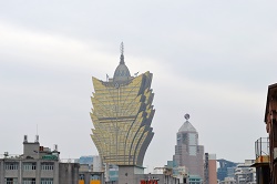 オーチャ廟からグランド・リスボアが見えます。52階建ての高さ258メートルの高級ホテルでカジノがあります。 |
