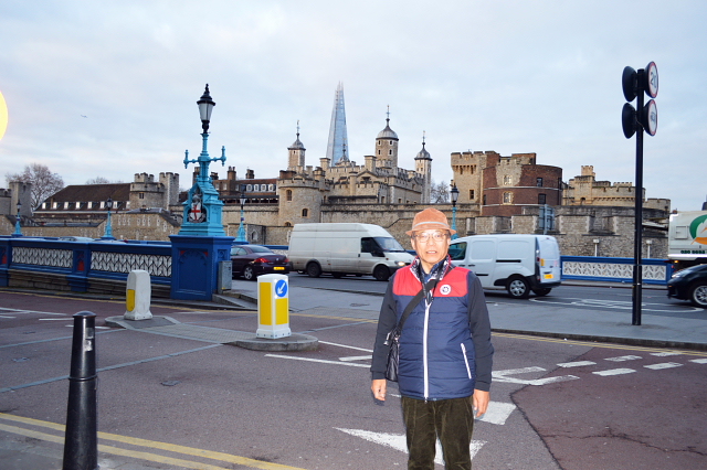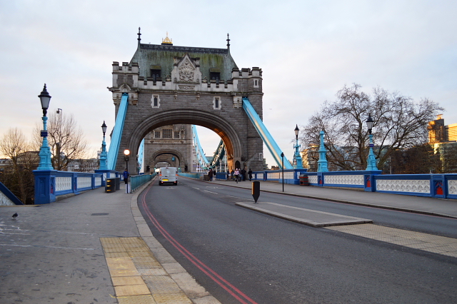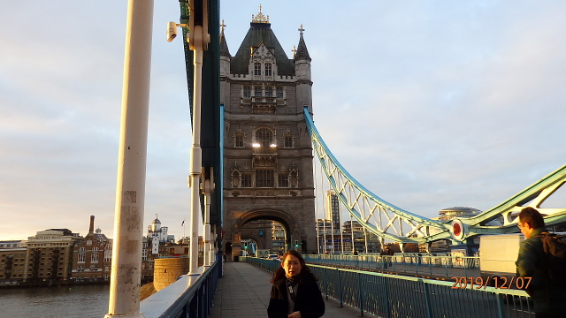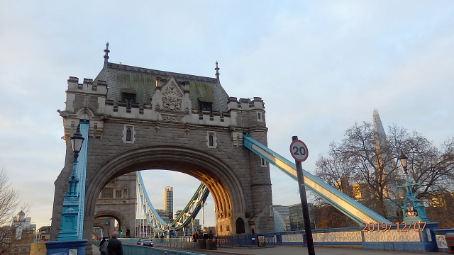 タワーブリッジの全貌が見えてきます。天候が曇りというかどんよりとしている感じで写真がきれいに撮れません。タワーブリッジは北西の橋脚塔から入場し南の塔から出口になっています。