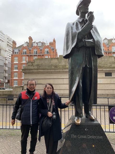 駅前ではシャーロック・ホームズの銅像があり沢山の観光客で賑わっていました。思ったよりも背の高い大きな銅像です。