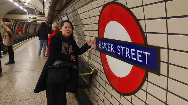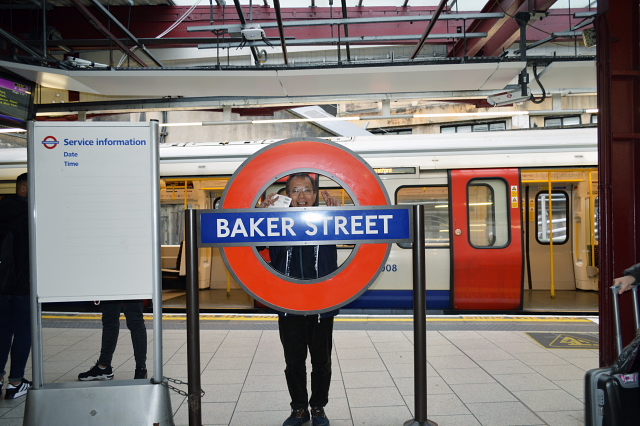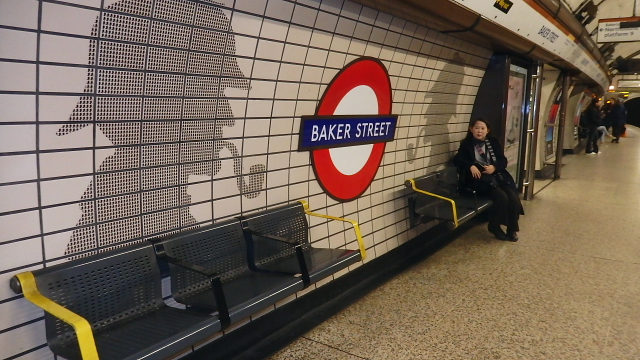 キングクロス駅を後にホームズ像とシャーロックホームズ博物館に行くためべーカーストリート駅で下車。まずはシャーロックホームズの横顔が描かれているプラットホームへ行きたいのですがこれまたわからず、駅員に聞いたところ「Down・Down」しか言わないのです。