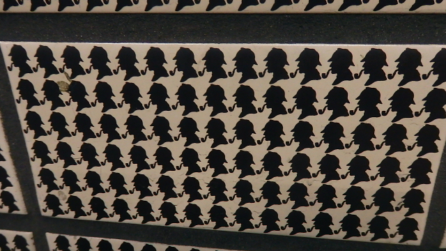 しょうがないので地下鉄を下へ下へ下へと移動。見つかったときはホットしました。近寄ってみるとシルエットは小さなホームズが集まってできているのです。