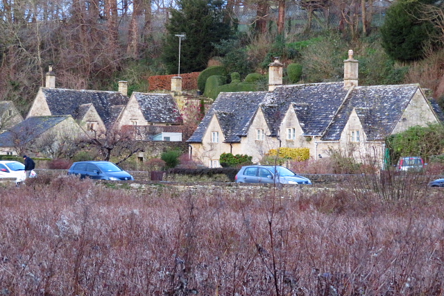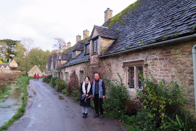 一番来たかった「イングランドで最も美しい村」と言われているはちみつ色のバイブリー。川の向こう側にアーリントン・ロウが見えてきます。500年以上の建物の中は実際に人々が暮らしていて
