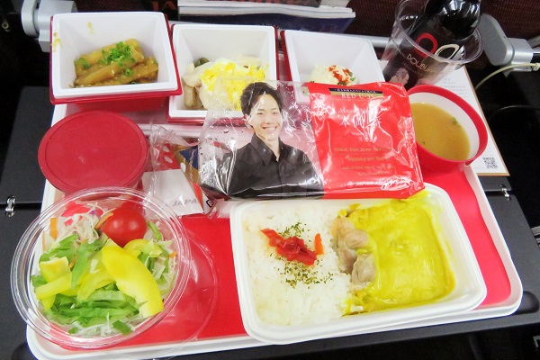 やっと機内食、和食と洋食をたのみました。美味しくいただきました。12時間30分のフライトやっぱり長いですね。でも、日空なので快適に過ごせました。やっぱりおもてなしはいいですね。