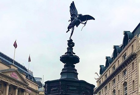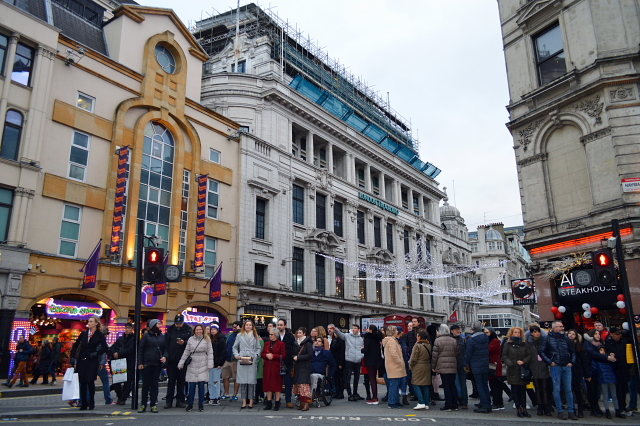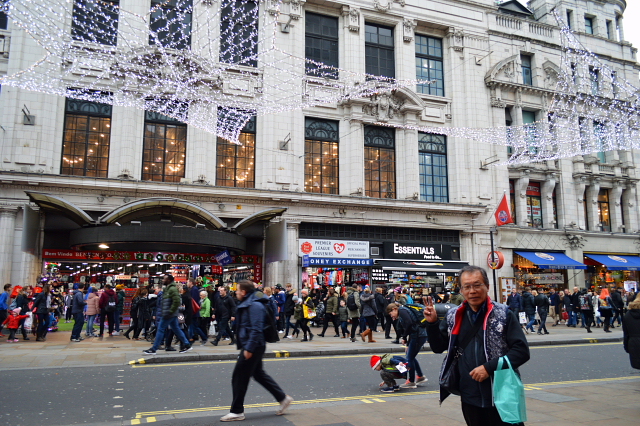 ロンドン象徴のエロス像の噴水広場。観光の定番スポット、クリスマスということもあって沢山の人々で賑わっています。噴水の上に建っていますがお水は出ていません。 色々なお土産屋さんが並んでいますが、紅茶で有名なフォートナム・アンド・メイソンでは、日本から情報を集め沢山の紅茶を購入することができました。