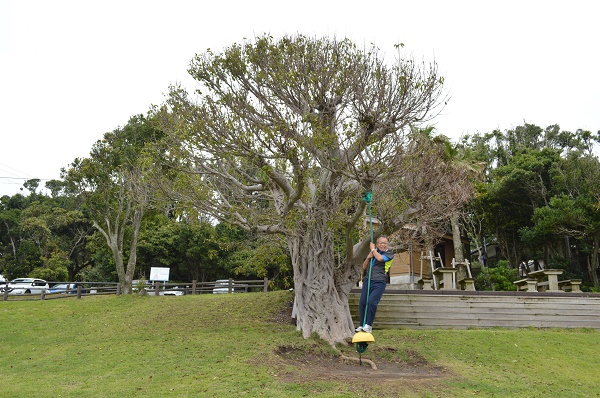 辰のおとし子会館に行く途中ブランコができる大きな木があります。楽しそうに遊んでいるのは主人です。