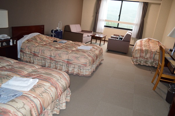 私たちの部屋は東館の6階1612号室です。二人なのに何故か三つのベットが設置されています。広い部屋です