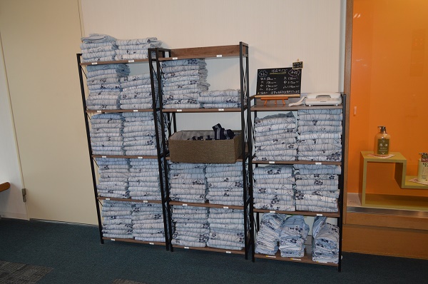 浴衣は各階のエレベーター前に用意されており好きなサイズの浴衣を選ぶことができます。