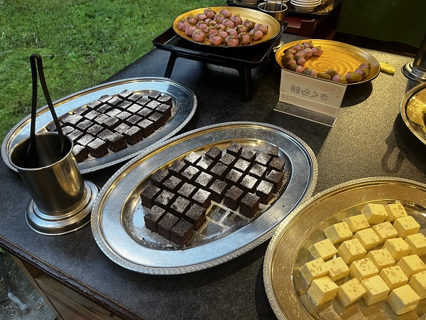 安納芋のパイとお茶セットがおいてあります。部屋の中にチョットしたお菓子嬉しいですね。