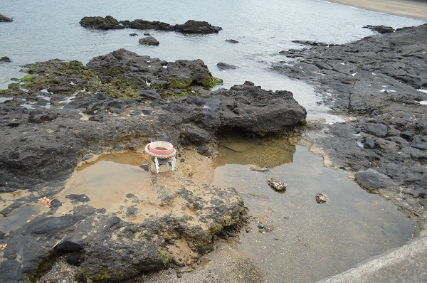 海側にある釜の中に命中すれば願いが叶うそうです。これは頭に蓋を乗せるよりはるかに難易度が高いですね。