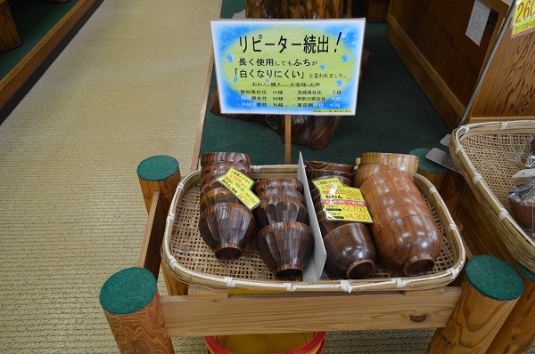 店内の様子。杉でできた商品が並んでいます。小さいものであればお箸~販売しています。