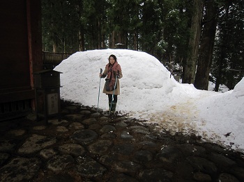 | こんなに雪あるとは知らず、私スカートはいています。なんという無防備でしょうか。一応階段はあるようですが、どこもかしこも坂でした。 |