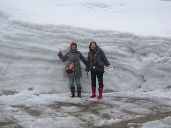 | まさか、こんなに雪が降っているとは思ってもみませんでした。バスを降りたとたん雪雪雪です。こんな雪見たの初めてです。 |