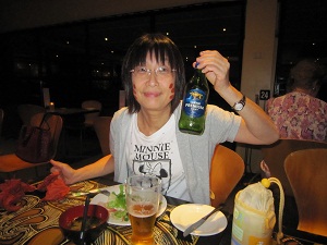 夕食食事はバイキングで、シーフード、オージビーフなど盛りだくさんです。嬉しいことにお味噌汁がありました。ビール大好きな悦子さん, オーストラリアのビールおいしいですか?