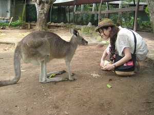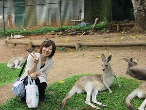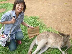 ワイルドライフパーク入園ワイルドライフパークは小さな動物園です。カンガルー、コアラ。ワニなどがいます。カンガール君は園内を自由に歩き回っています。どのカンガールくんも大きな態度で寝転がっています。そして人懐こいんです近くによっても逃げることもなく本当にかわいいです。 コアラちゃんぬいぐるみ見たくすっごく可愛い。コアラちゃんの仕事はゆうかりを食べる以外寝るのが仕事だそうです。観光客に抱っこされるのも仕事のうちほんの数分なんですって。いい仕事しています。コアラちゃん。お家のもって帰りたいよ。 ワニの名前を「ジャック」といいます。切り裂きジャックだそうです。いままでに花嫁さんを12匹もらってどのお嫁さんもいなくなってしまったらしいんです。何故かというと全部食べてしまったそうです。「皆さん13匹目のお嫁さんにならないように」とガイドさんがいっていました。体重1トン体長5メートルあるようです。飼育の方も何故もっと早く気が付かなかったのか?疑問ですよね。