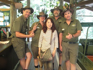 ランチ後は約1時間30分、キュランダ村の散策になります。森の中にあるマーケットは、個性的なショップが並んでいます。ガイドブックに載っていた、キャンディーのお店や赤い屋根が目印の日本語メニューがあるアイスクリーム屋さん、アイスクリーム屋さんのおじさん日本語でちょっと古いギャグを言っていました。新しいギャグを教えようかと思いましたがやめときました。お〜いお茶も売っていましたが日本での倍以上の値段がしました。