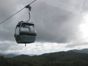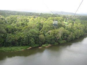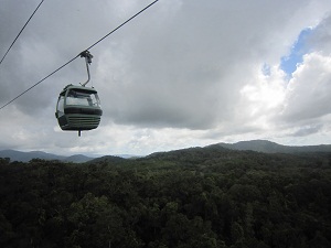 スカイレール1995年に運行を開始したケアンズとキュランダを結ぶ全長7.5kmのレールウェイ。世界で一番長いスカイレールです。途中散策を含め約1時間です。 世界遺産の熱帯雨林を眼下に眺められると同時に、遠目ながらグリーン島も見る事のできる空中散歩は、他の場所では見られない素晴らしい景色です。 「アバタ―」の舞台にもなったそうです。 キュランダ駅からカラボニカ駅の途中にレッドピーク駅があります。ここでいったんスカイレールを降、木で出来た遊歩道を散策します。