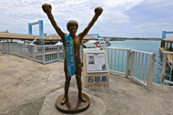 石垣港にはなんと具志堅さんの銅像が建っていました。ボクサーとして島のヒーローなんでしょうね。石垣港から竹富港までは、船も揺れずに船酔いもすることなくフェリーで約10分あっというまに到着