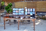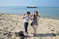 コンドイビーチと隣接しているカイジ浜に星砂の浜があります。星の砂が見つかる美しい浜として有名です。ガイドさんが星砂の見つけ方を教えてくれます。砂に手のひらを押し付けてくっついた砂を見るとそこには星砂があります。子供も大人も夢中で探していました。星砂って有孔虫という生物が死んで残した殻なんですって。でも星の形しててきれい 石灰質の殻だとしても